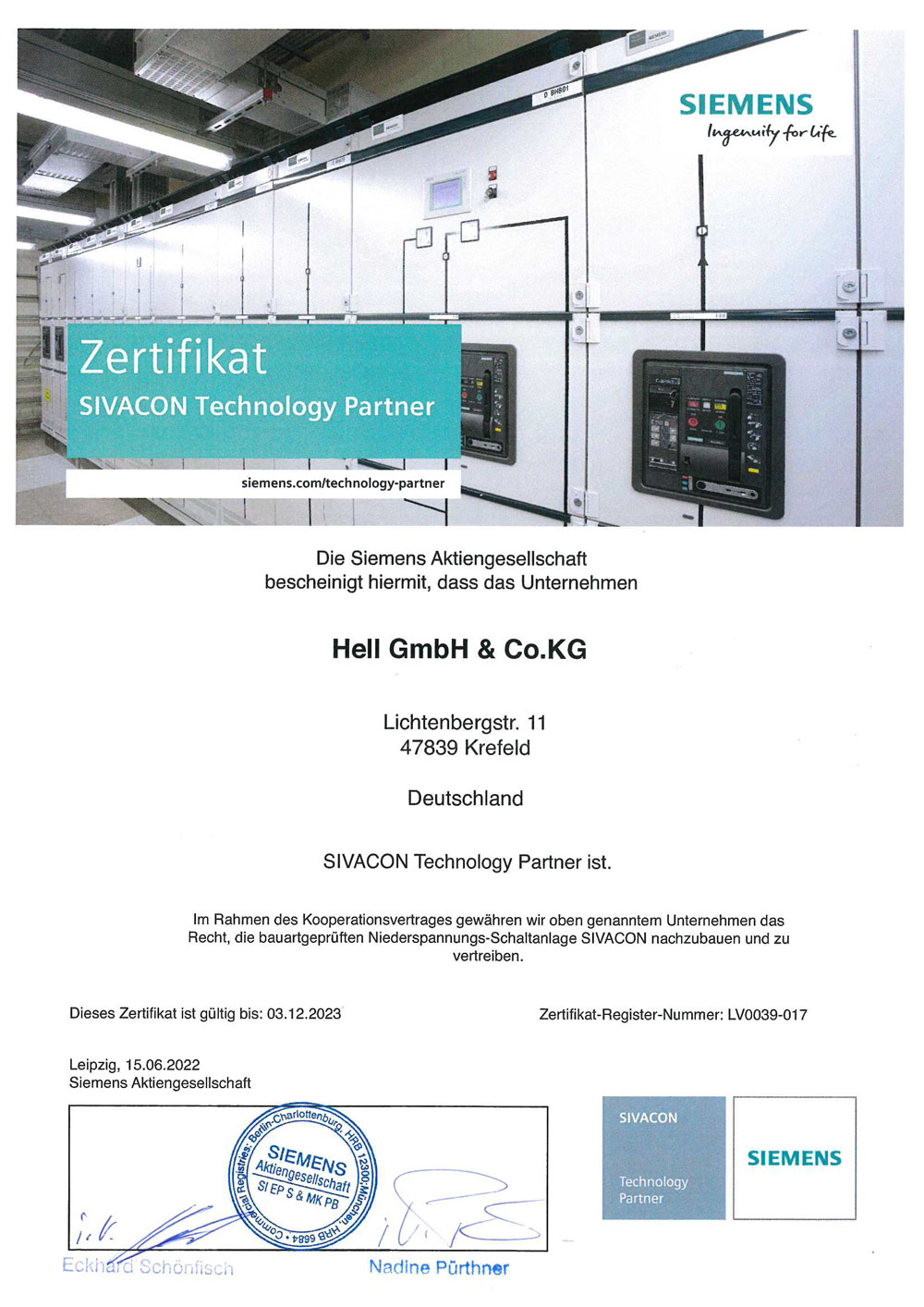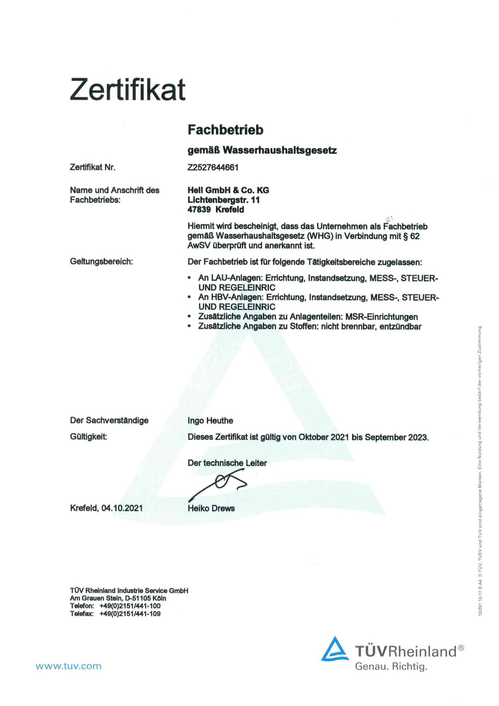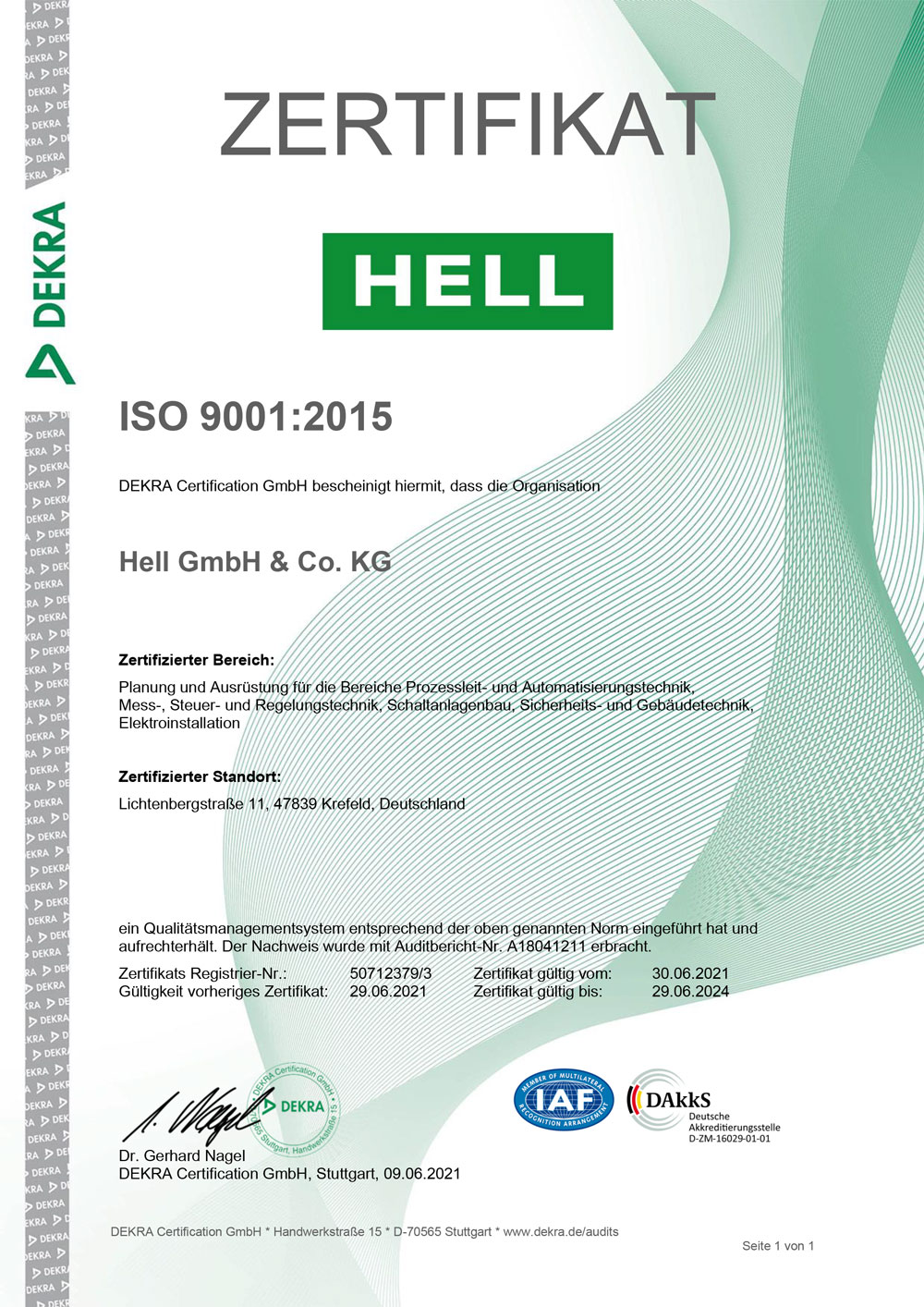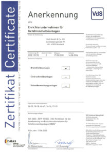 An dieser Stelle finden Sie Zertifikate für das Informationssicherheitsmanagementsystem ISO 27001:2017, das Qualitätsmanagementsystem ISO 9001:2015, die Anerkennung als Fachfirma für Brandmeldeanlagen gemäß DIN 14675, die Anerkennung als Errichterunternehmen für Gefahrenmeldeanlagen, die Anerkennung für den Explosionsschutz nach ATEX und außerdem die Anerkennung als Fachbetrieb gemäß Wasserhaushaltsgesetz. Außerdem sind wir zertifizierter Janitza Solution Partner, Siemens Solution Partner im Bereich Automation Drives und SIVACON Technology Partner.