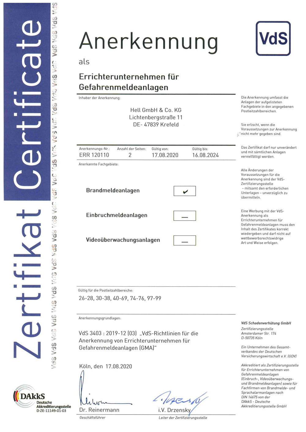 Für eine Vergrößerung respektive weitere Informationen zu der Zertifizierung klicken Sie einfach auf das jeweilige Bild des Zertifikates.